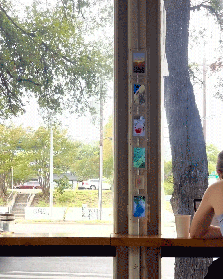 I filmed short videos of the video frames on display in my home, and then turned these videos into GIFs to display online for a dynamic web experience on Coyote Pretty.”